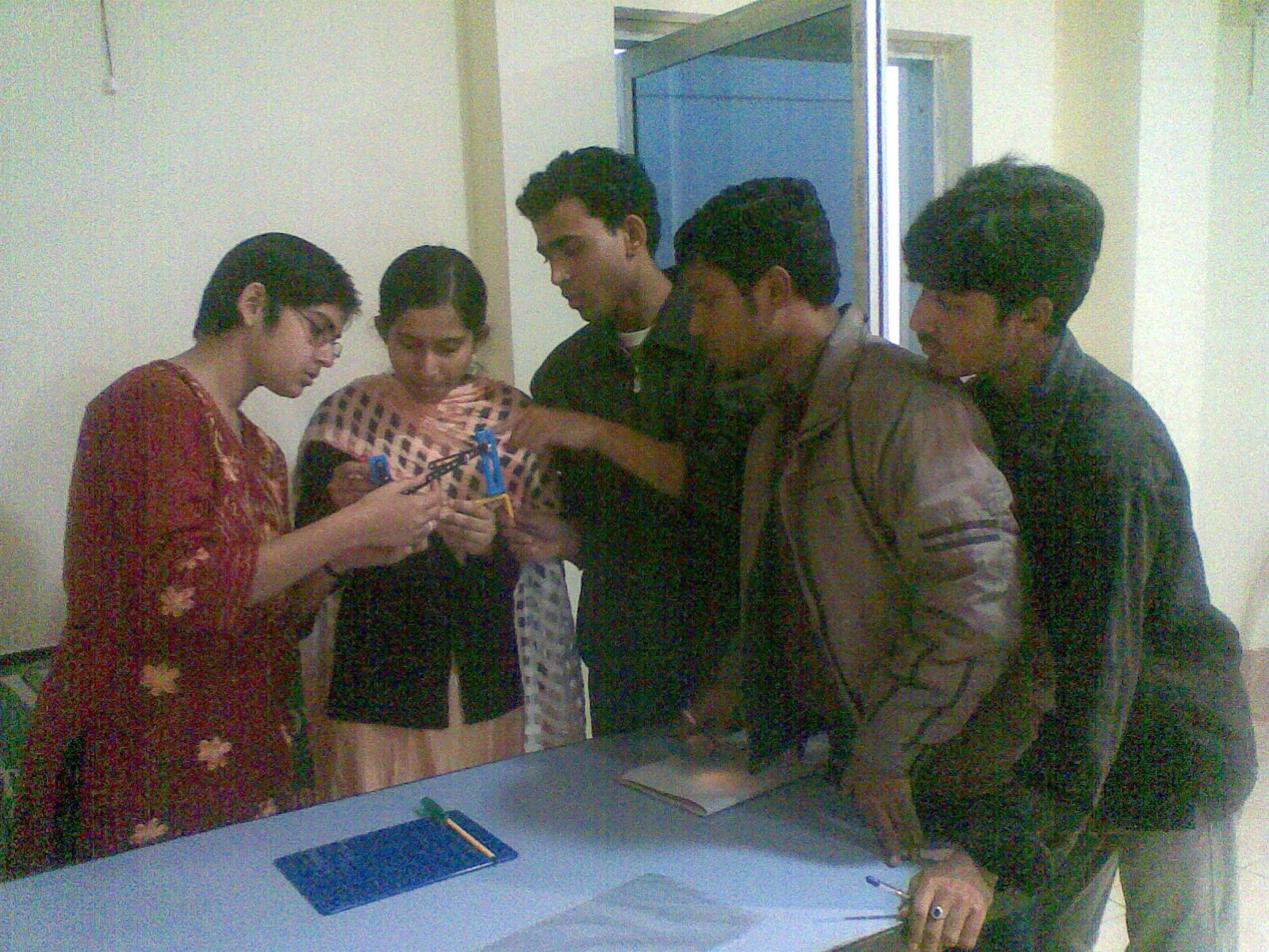 Students building models with